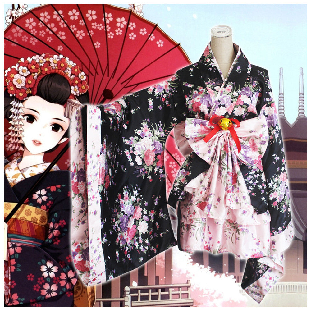 - Nice stuff for cosplay fans;Sakura printing Kimono costume,sexy and elegant to wear